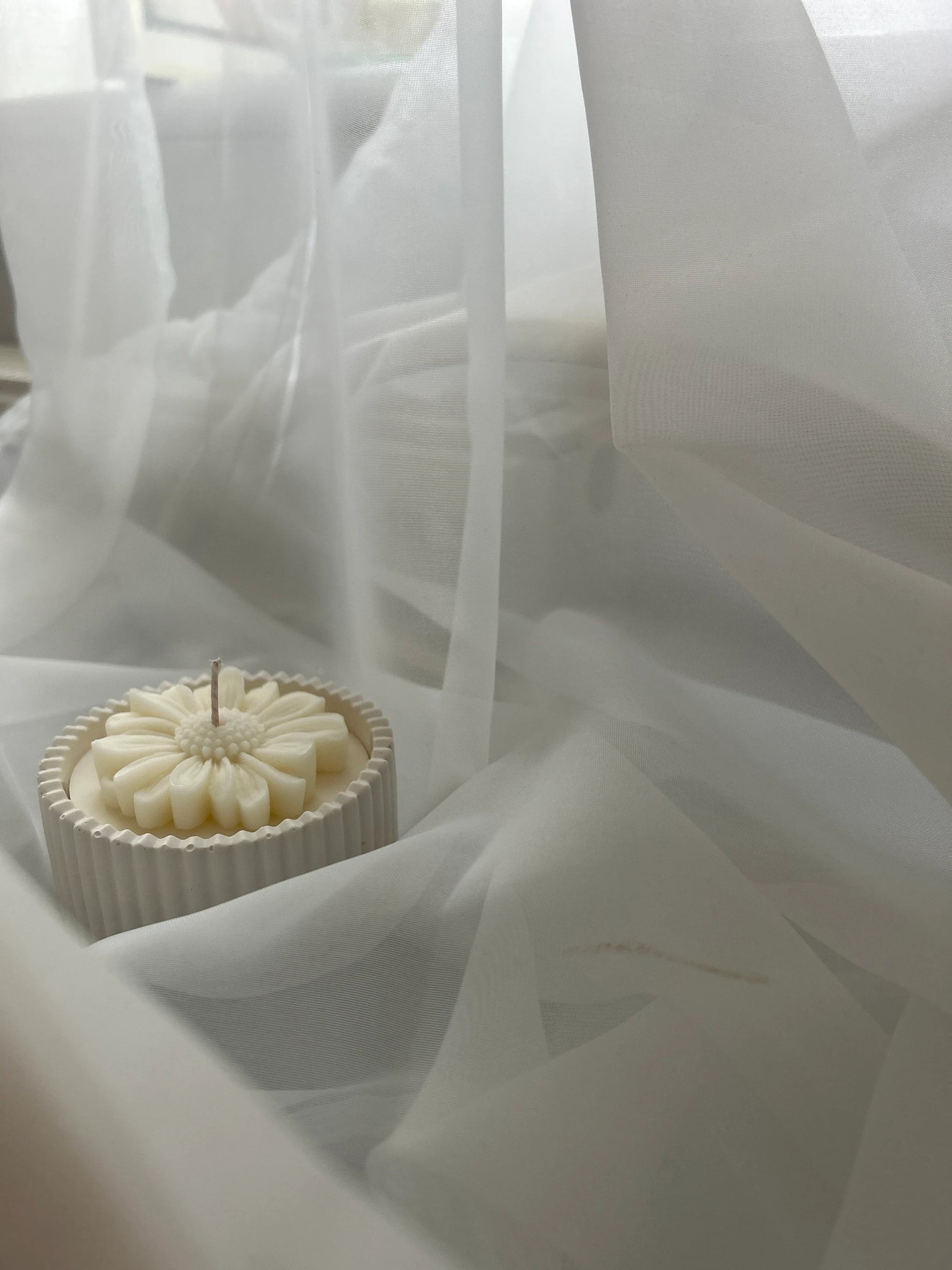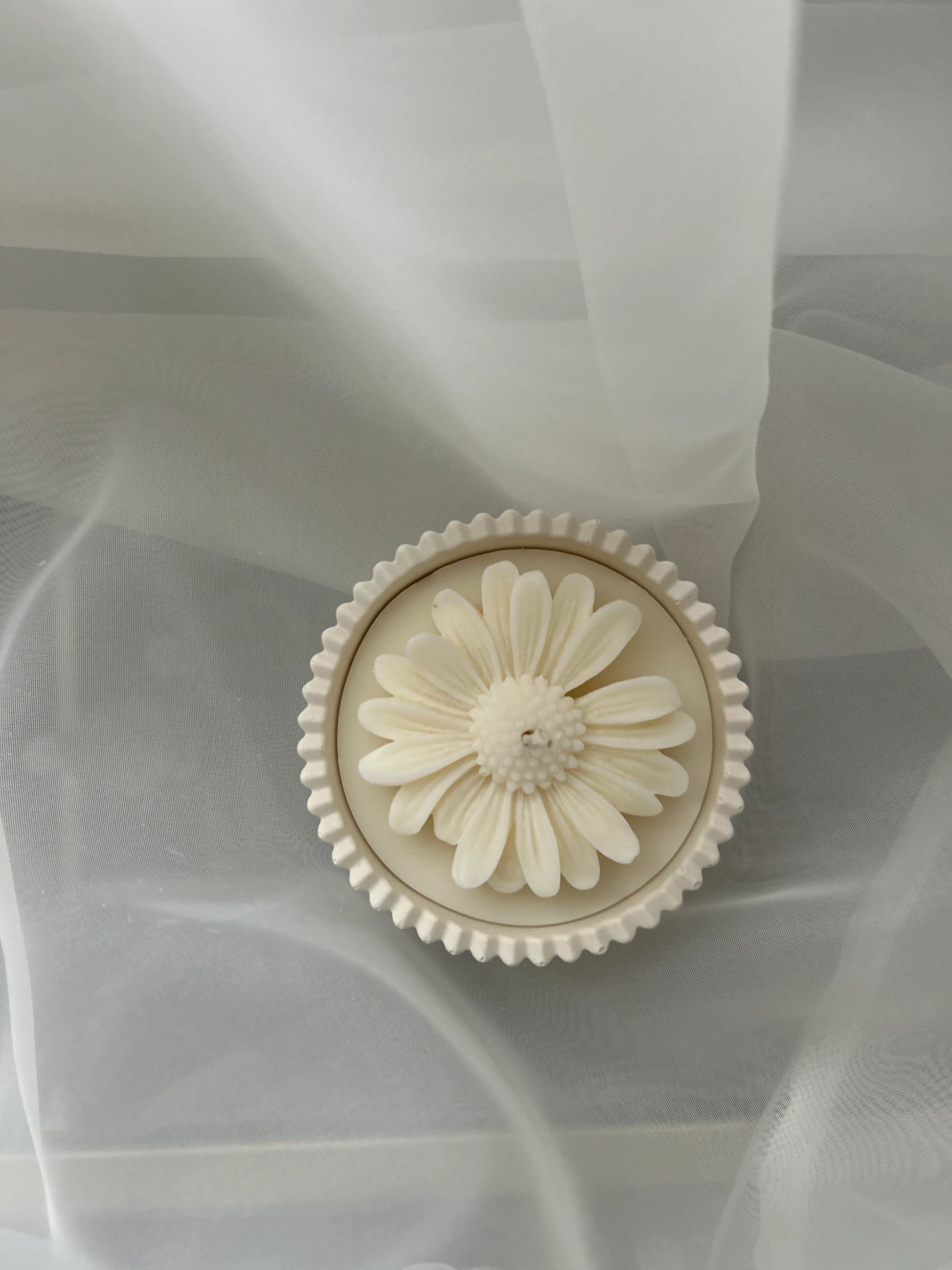 Handmade candle holder filled with vanilla scented wax and topped with a spring candle 🤍